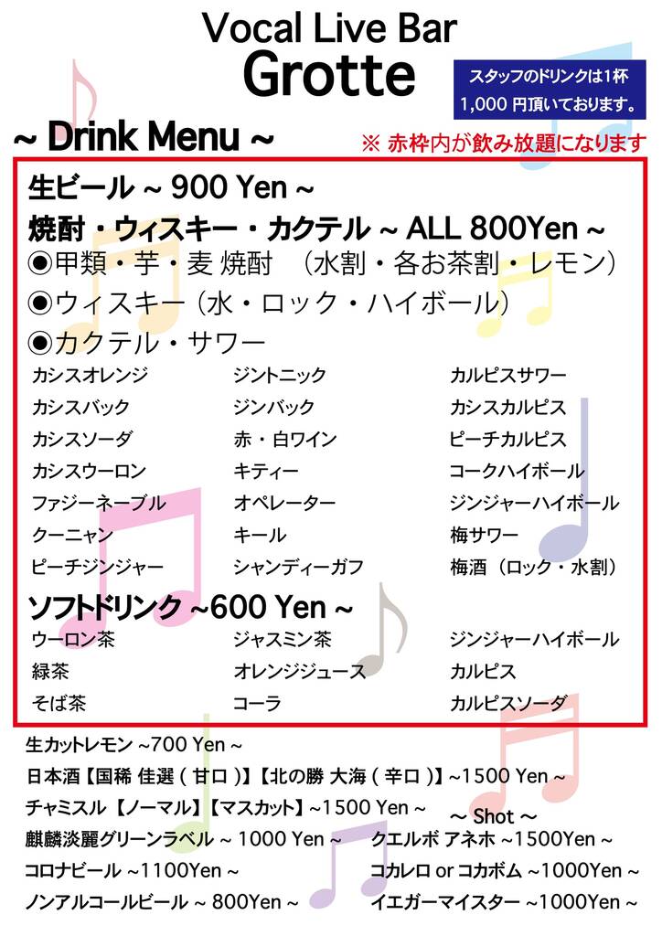ボーカル・楽器演奏者兼ホールスタッフを募集しております! まずはお気軽にご連絡ください。 資格:18歳以上 時間:19:00〜(時間応相談) 週1〜4日の勤務からOK 給与:時給1,075円〜(試用期間有) 応募:電話連絡のうえ写真付き履歴書、カラオケ音源をご持参ください。 連絡先:011-518-4880(店舗) 090-1647-6836(担当 丹野) メールでの応募は下記より vocal.live.bar.grotte2000@gmail.com